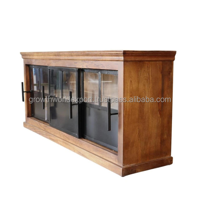 Industrial Wooden Sideboard with 3 iron Sliding Door & storage
