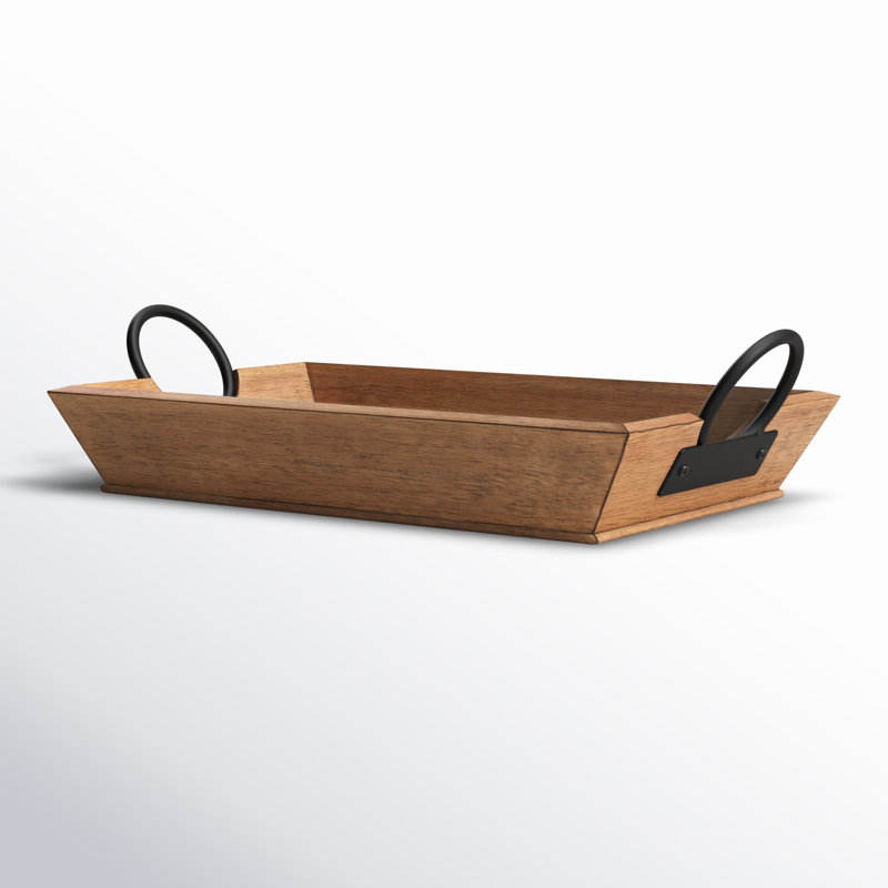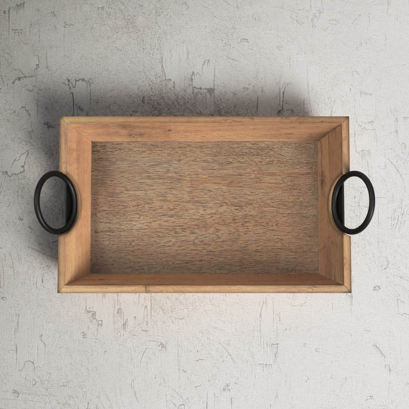 2025 Modern Style Eco-Friendly Wooden Tray with Black Plated Metal Handle Home Hotel Kitchenware Serving Multipurpose Tray