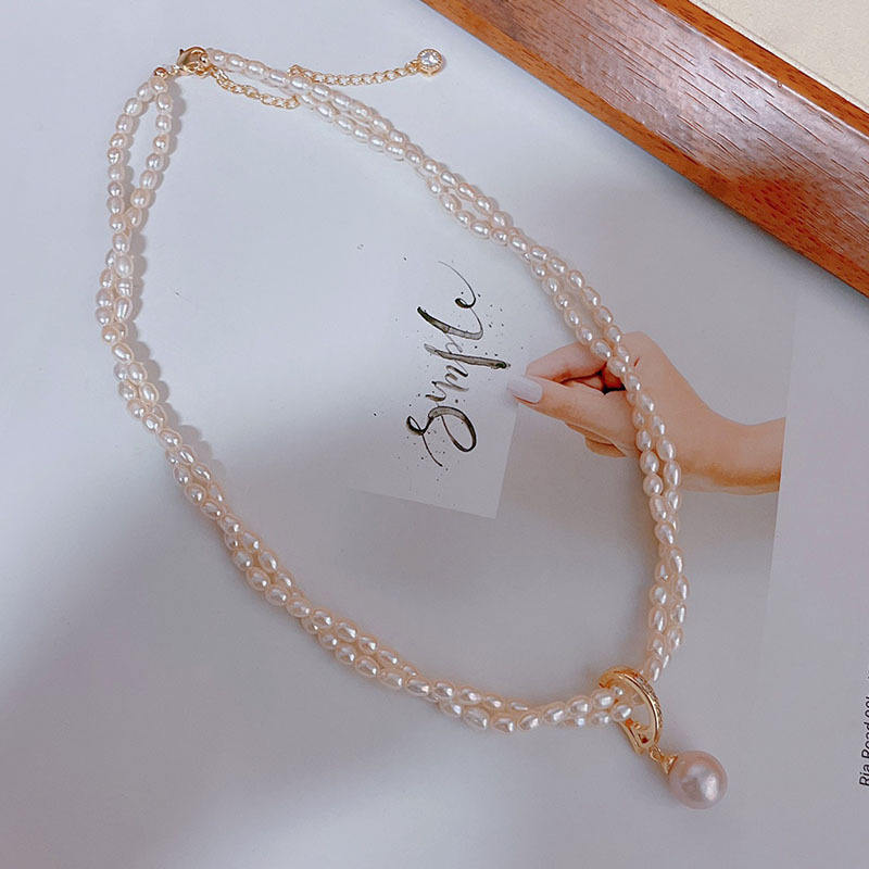 2025 New 14K Gold Infused Fried Dough Twists Chain Pendant 3-4MM Millet Beads + 7-8MM Freshwater Pearls Pearl Necklaces