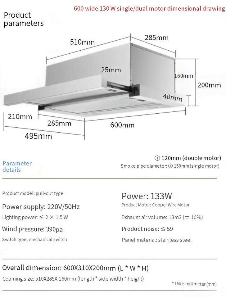 340 m³ / hrair exhaust rate