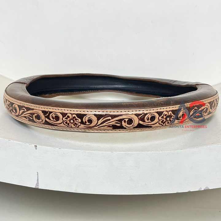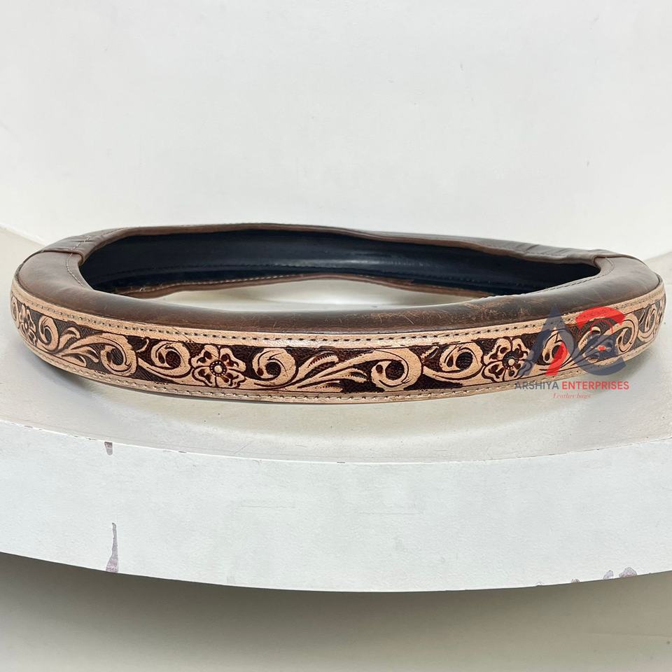 Hand Tooled Genuine Leather Steering Wheel Cover