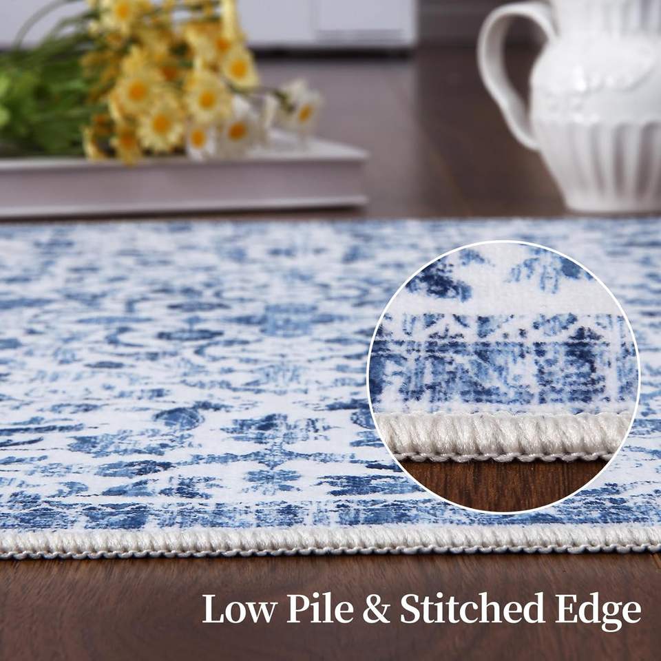 2025 New Arrival 8x10 Machine Washable Blue Vintage Distressed Area Rug Non-Slip Foldable Floral Medallion Carpet Retro Oriental