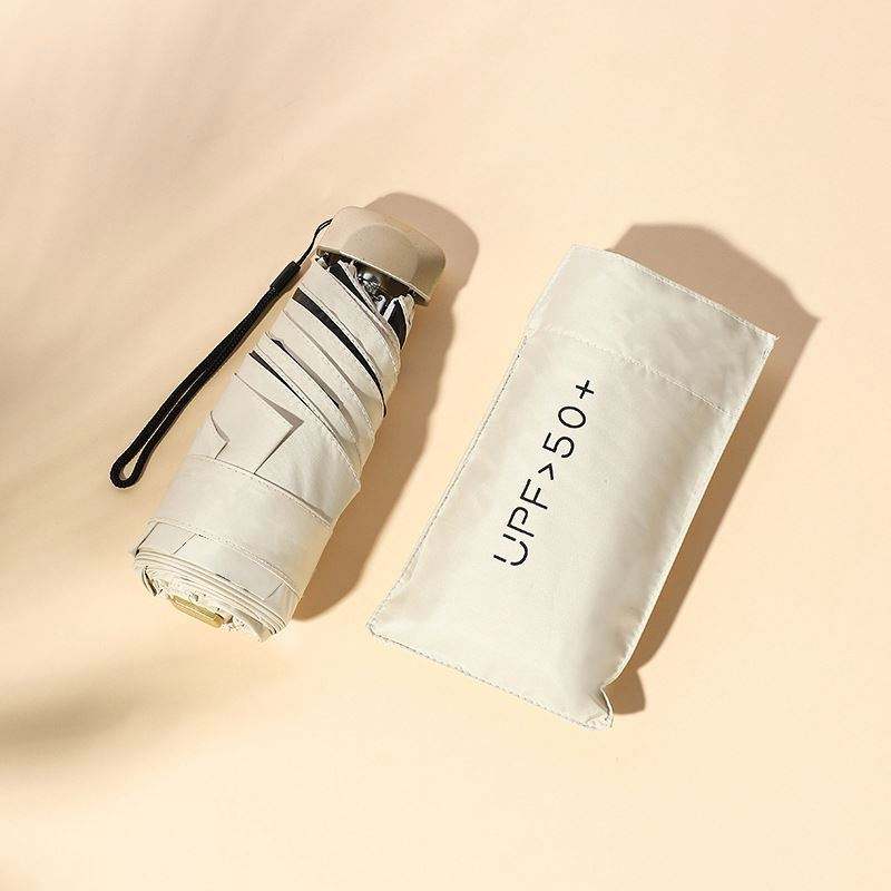 2025 New Arrival Custom Five Sun Polyester Durable Modern Hand Fold UV Resistant Black Gel Mini Capsule Folding Pocket Umbrella