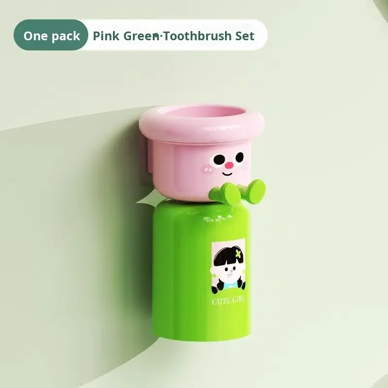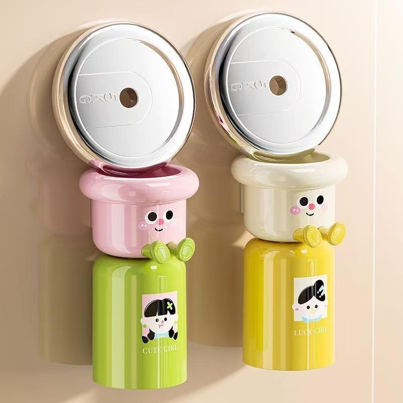 2025 New Arrival Cute Magnetic Toothbrush Holder Home Use Plastic Toothbrush Cup Wall-mounted Toothpaste Holder