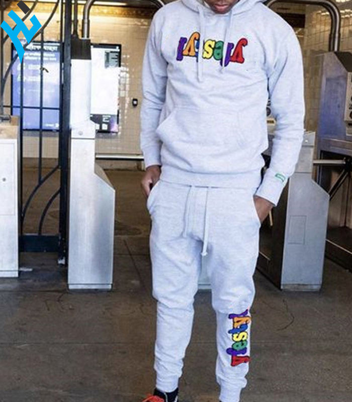 2025 New Arrival Design 100% Cotton Customization men fitness long sleeve top loose trousers chenille patch For men tracksuit