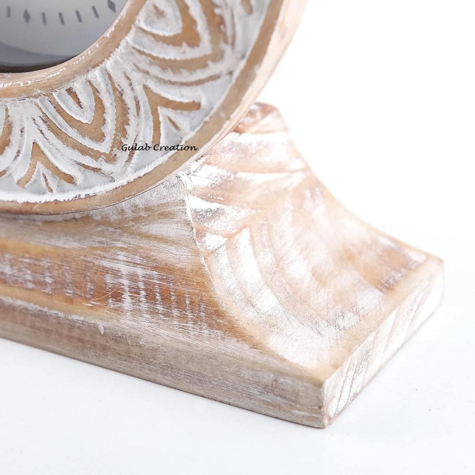 Distressed White Modern Style Hand Carved Wooden Clock Quartz Motive Vintage Decorative Timepiece for Home Office Table Desk Use