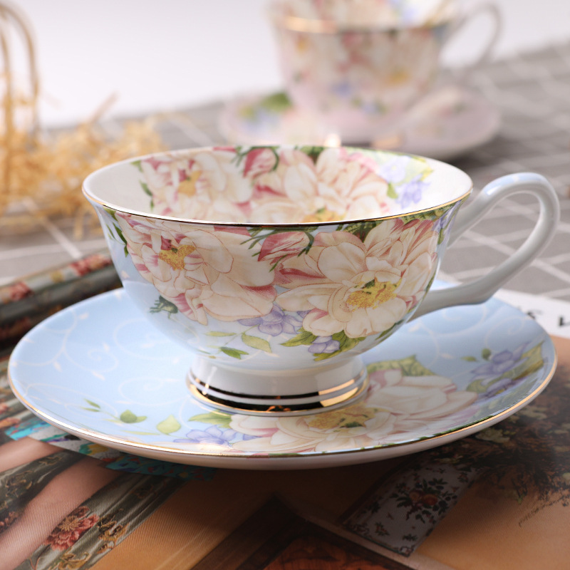 2025 Elegant British Afternoon Tea Set New Arrival Bone China Real Gold Rim Ceramic Espresso Coffee Cups Saucers Factory