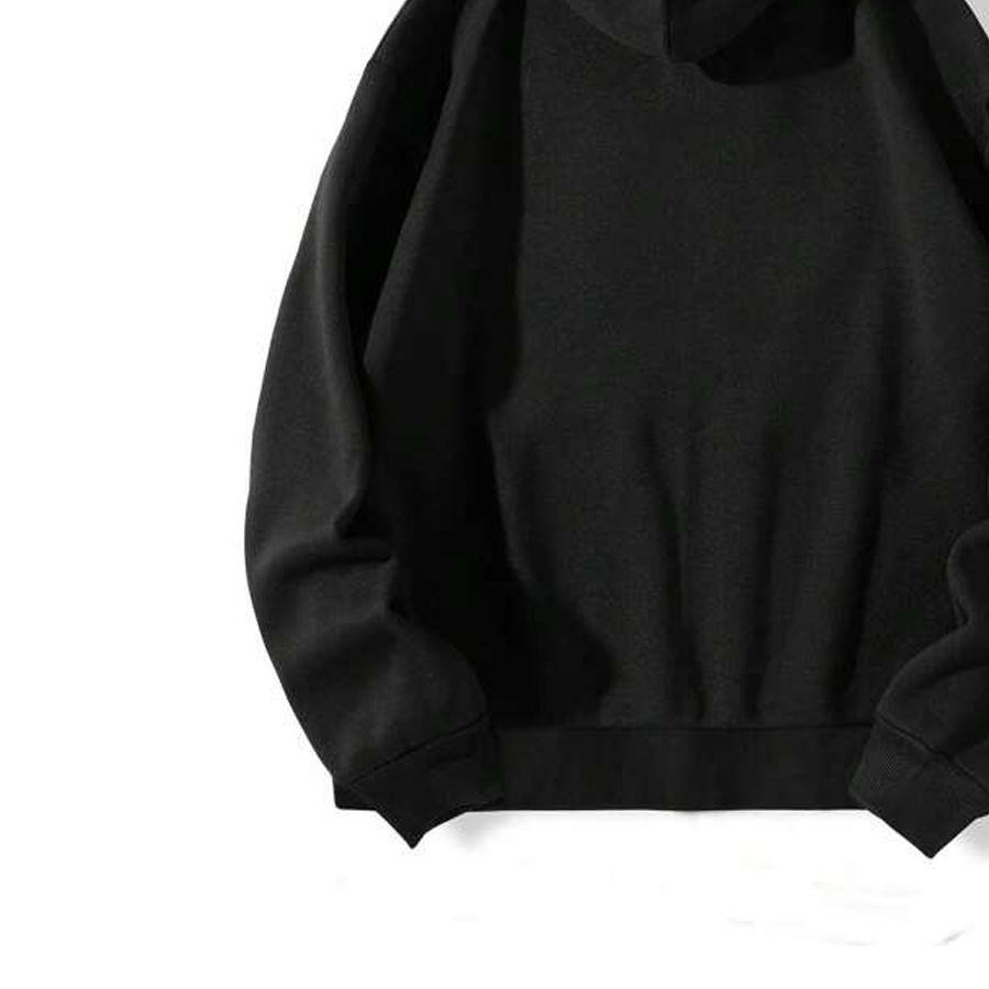 2025 New Arrival Black French Terry Full Zip Men's Hoodie Plus Size Cotton Blended Basics With Rhinestones for Winter