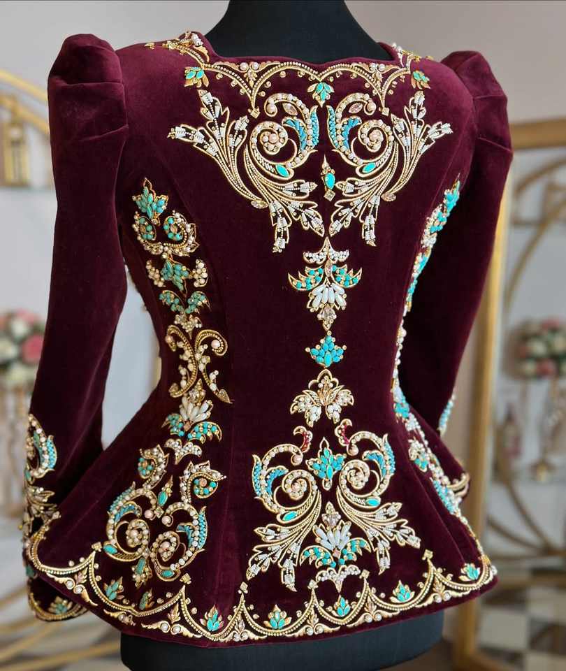 2025 New Arrival Breathable Grey Karakou Velvet Silk Dresses for Casual Arab Muslim Girls Hand Embroidered Wedding/Evening