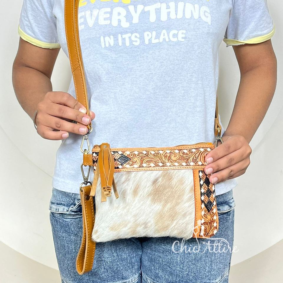 Product name:Hand Tooled Cowhide Checkered Fashionable Crossbody Bag