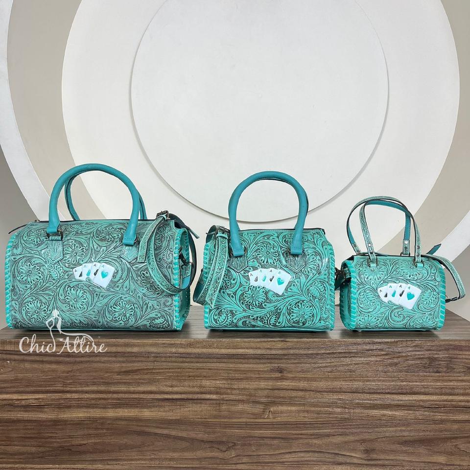 Product name:Hand Tooled Leather 3 Piece Duffle Speedy Bag Set