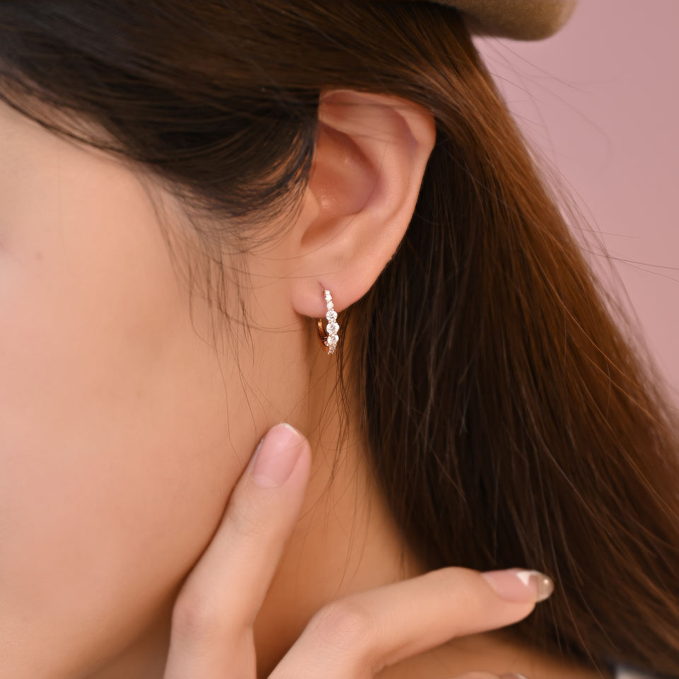 2025 New Arrival Hoop Earrings Jewelry 18K Solid Rose Gold Fine Natural Diamond Hoop Earring Jewelry Set Design For Girls