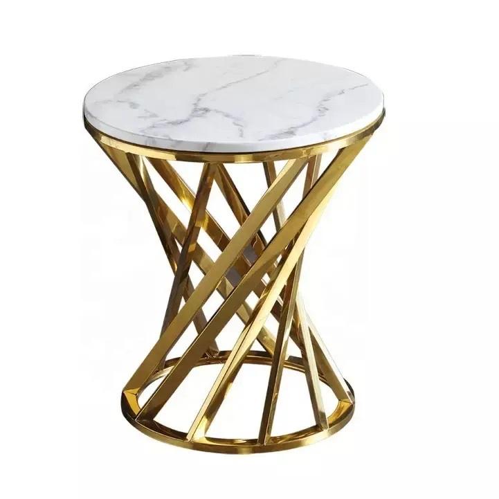 2025 New Arrival Luxury Modern Gold-Plated Metal X-Base Round Marble Top Coffee Table by ZAM ZAM IMPEX