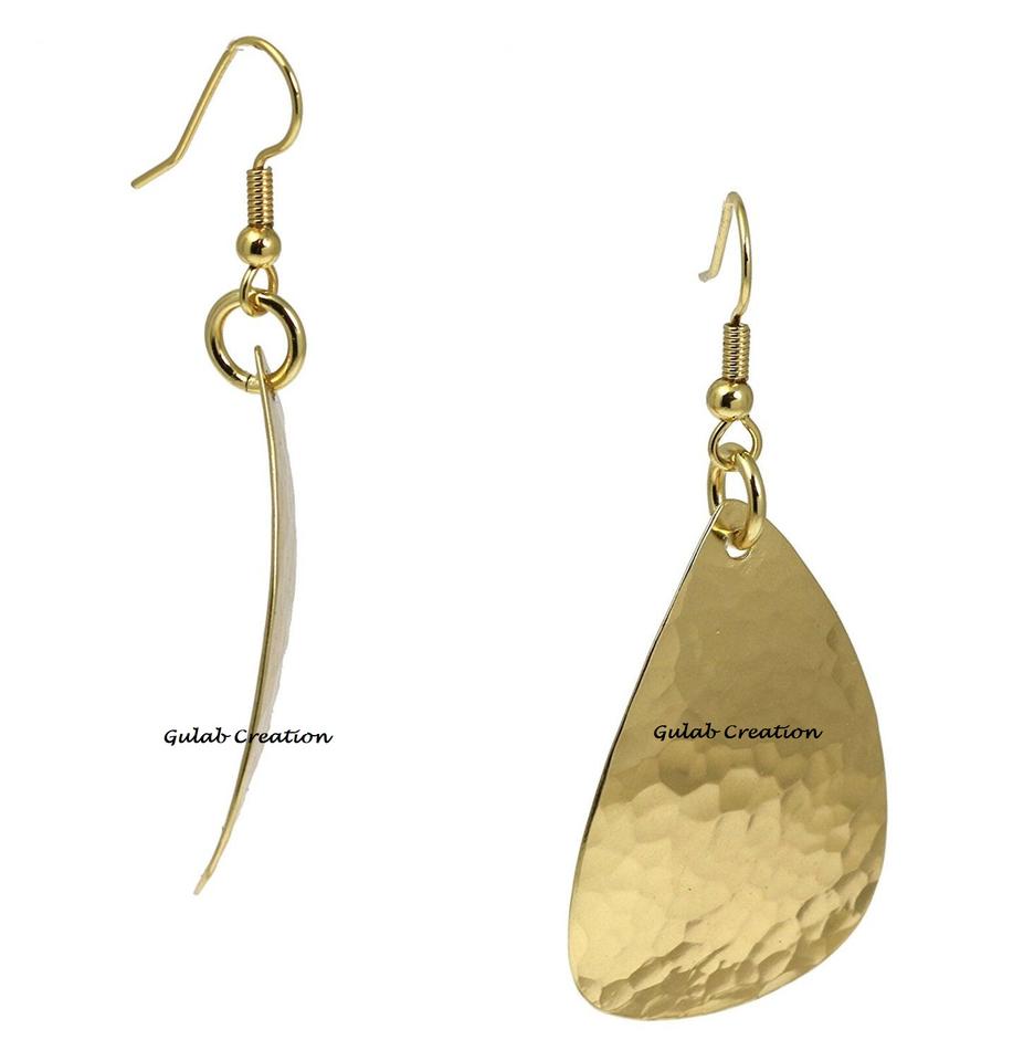 Long Abstract Hammered Gold Teardrop Earrings Lightweight Geometric Dangle Statement Jewelry for Women Fashion and Party Wear