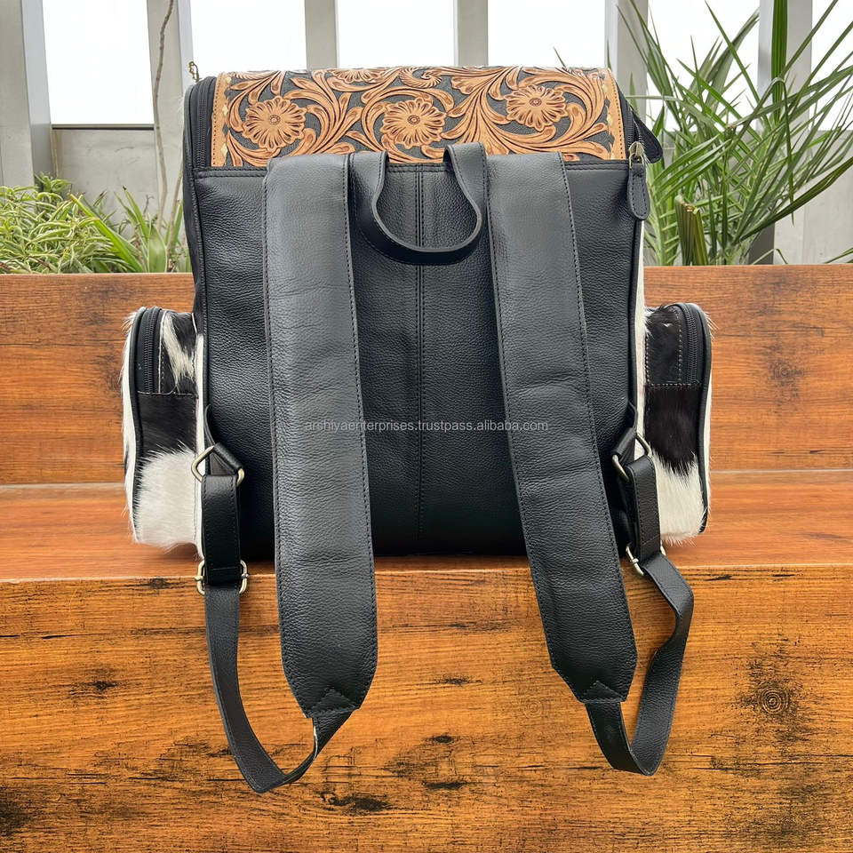 2025 New Arrival Travel Backpack Hand Tooled Leather Checkered Pattern Large Size Cowhide Leather Diaper Bags Backpack for Women