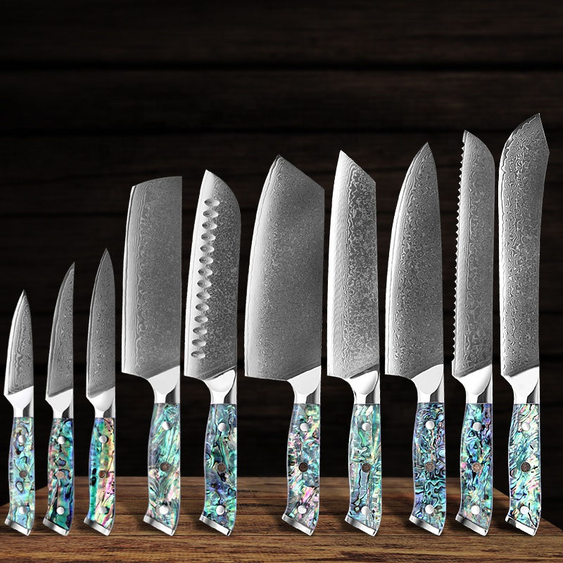 2025 New Arrival Wholesale PRESTIGE BLADES Professional Custom Handmade Damascus Steel Seven-Piece Ambidextrous Knife Set