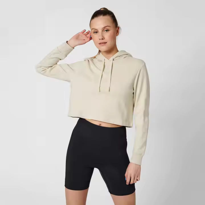 2025 New Arrival Women's Crop Top Winter Hoodie High Quality Wholesale Polyester/Cotton Fleece Material