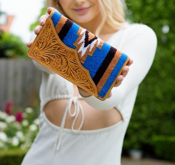 Product name:Yellow Saddle Blanket Clutch with Tooled Leather