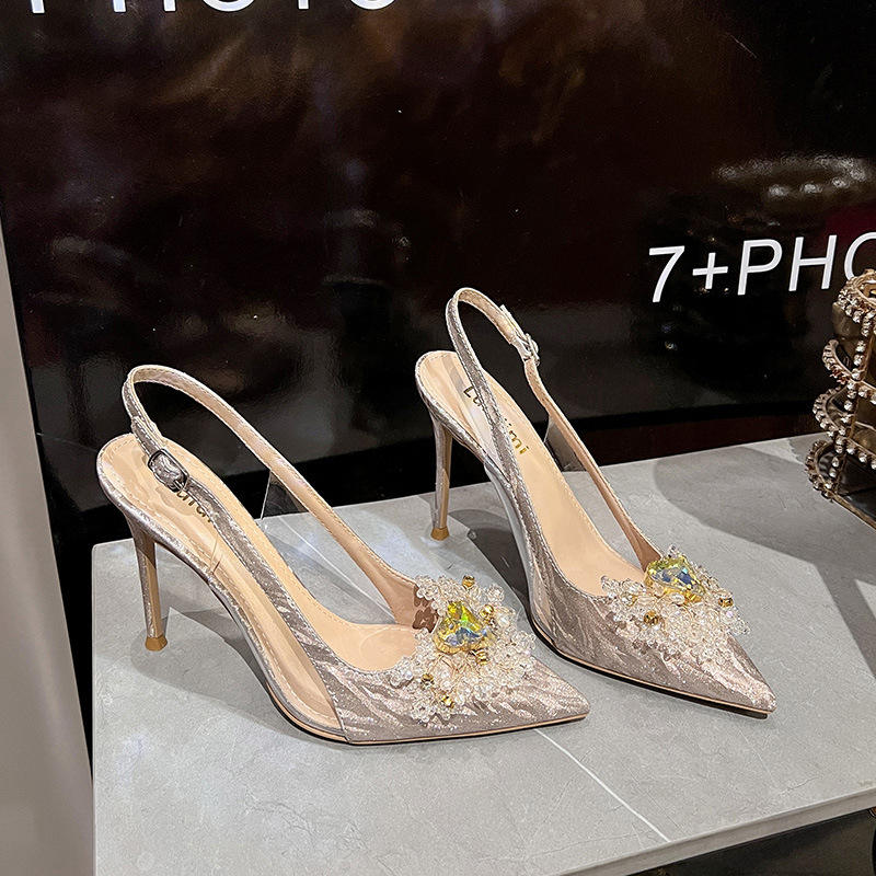 2025 New Arrivals Exquisite Stiletto Pointed Toe Rhinestone Pearl Bridal Wedding Shoes Shiny Closed-toe High Heel Sandals