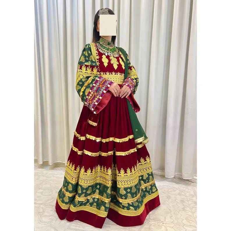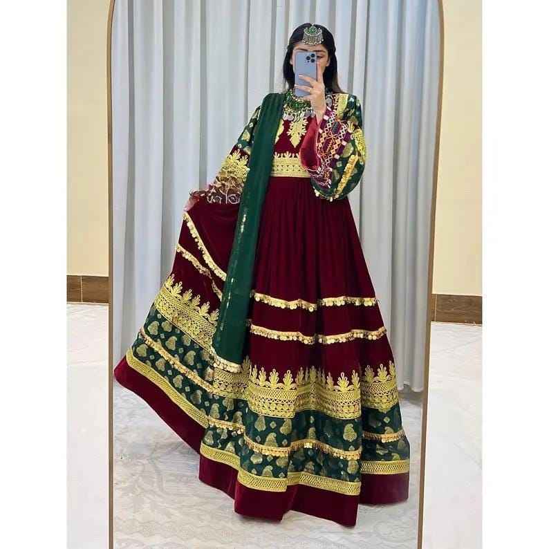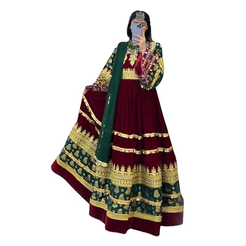 2025 New Arrivals Fashionable Handmade Appliques Afghan Kuchi Dress Ladies Long Sleeves Party Wear Maxi Style Floor Length Women