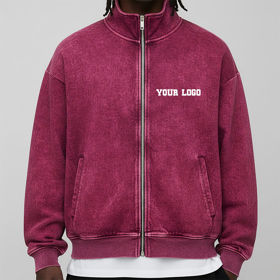 2025 New Arrived Casual Wear Autumn Acid wash Quater Zipper Hoodies & Sweatshirt Custom Embriordery Logo Heavyweight Sweatshirt