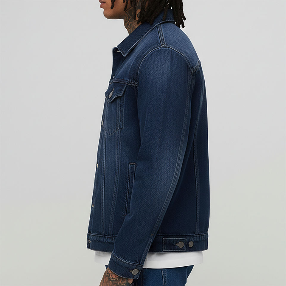 2025 New Arrived Casual Wear Breathable Dark Blue Stone Washed Denim Jacket Turn Down Collar Hip Hop Style Jacket For Man