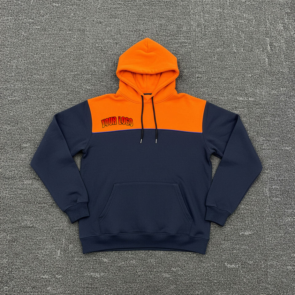 2025 New Arrived Custom Chenille Patch Embroidery Logo Color Block Hooded Sweatshirts Pullover Oversized Streetwear Hoodies
