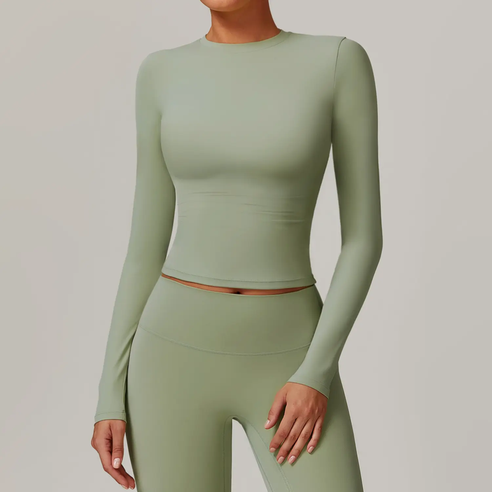 2025 New Autumn Winter Ladies' Long Sleeve Yoga Suit High Waist Fitness Crop Top Jersey Material Casual Plus Size High Waist
