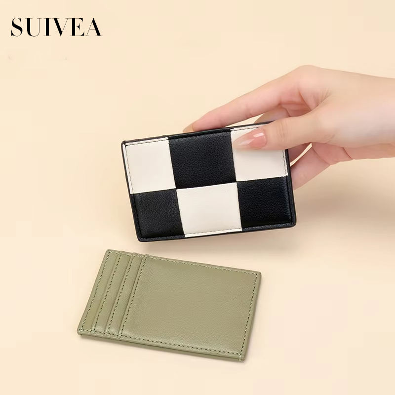 2025 New Bags for Women Brand Chessboard Pattern Small Card Bag Trendy Clip Card Cover Compact and Exquisite Coin Key Wallet