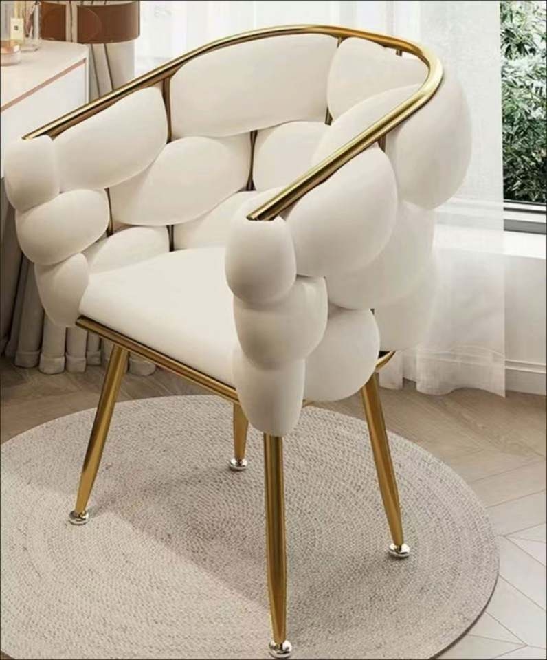 2025 New Beige Tufted Chair Soft Minimalist Manicure Makeup Dining Chair for Hotel Home Office Bedroom Makeup