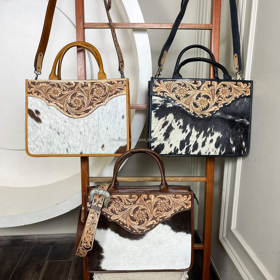 Product name:Hand Tooled Cowhide Leather Shoulder Tote Bag