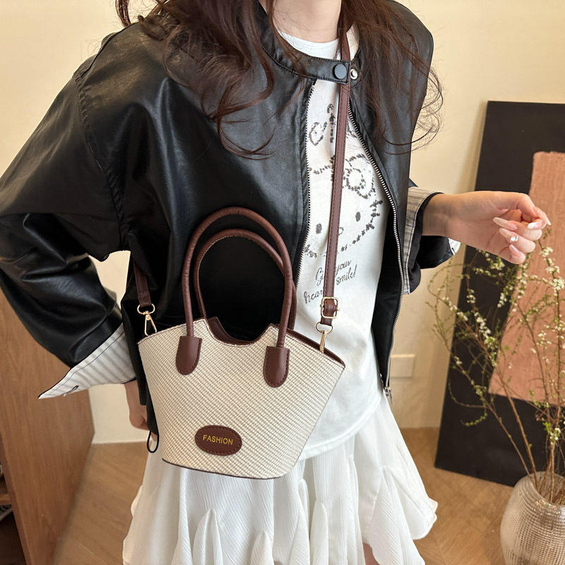2025 New Canvas Tote Bags Fashion Lady's Bucket Bags Stitching Color Lady's Crossbody Bags