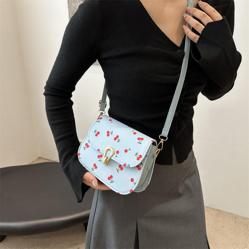 2025 New Cherry Print Design Genuine Leather Zipper Waterproof Shoulder Bag Crossbody Small Square Summer Popular Handbag for