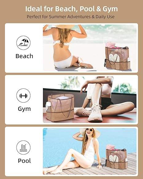 2025 New Custom 2-in-1 Large Nylon Beach Mesh Tote Bag with Zipper for Women Personalized with Logo