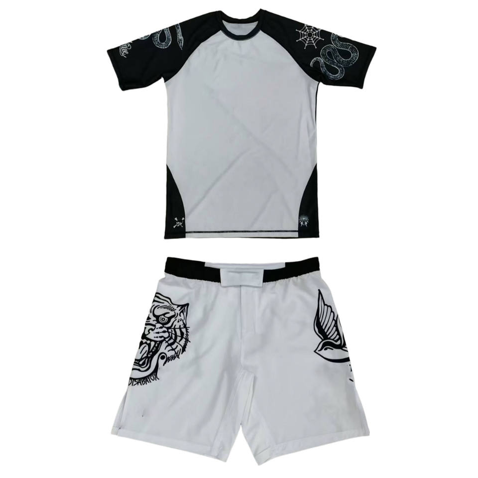 2025 New Custom Men's Rashguard+Shorts Sets Stretch Spandex/Polyester 200gsm for MMA Jiu Jitsu & Grappling