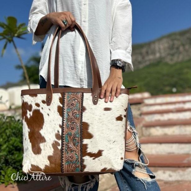 Hand Tooled Cowhide Leather Women Tote Bag