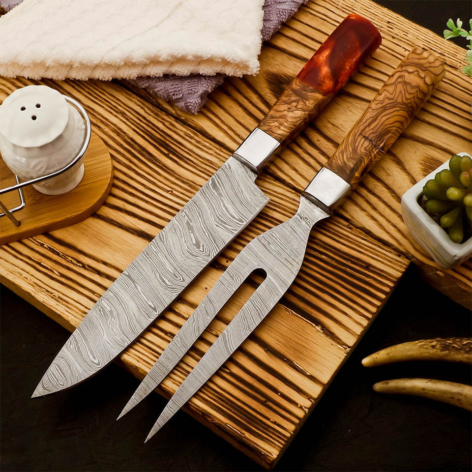 Damascus Steel BBQ Knives