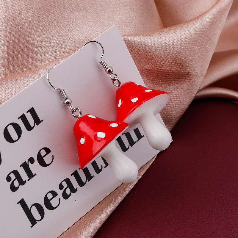 2025 New Delicate Creative Design 3D Resin Cute Fashion Drop Earrings Custom Hip Hop Mushroom Charm Dangle Earrings for Girls