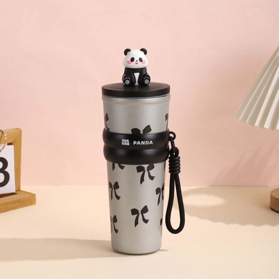 2025 New Design 700ml Cute Panda Outdoor Portable Stainless Steel Vacuum Cup Lid Direct Drink Thermal Insulation 6-12 Hours