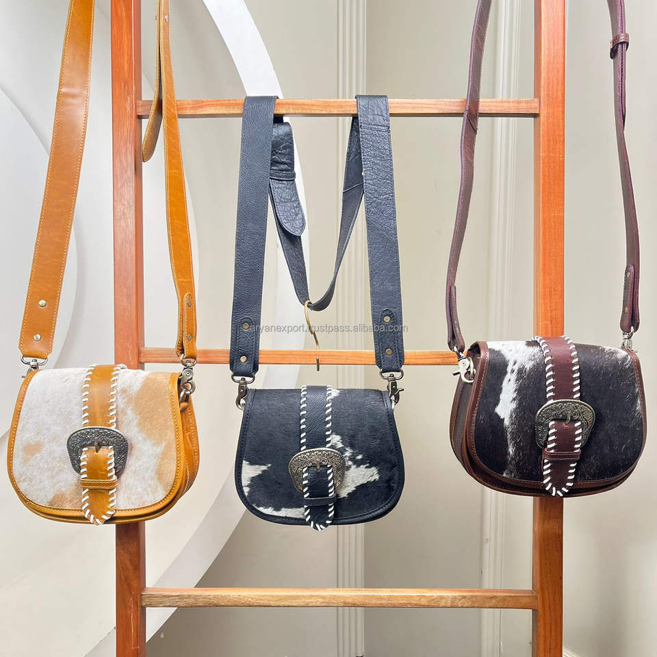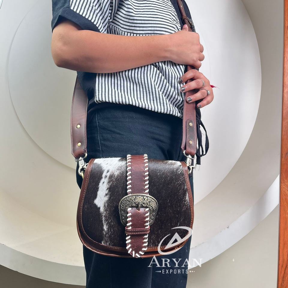 Cowhide Leather Crossbody Saddle Bag with Buckle