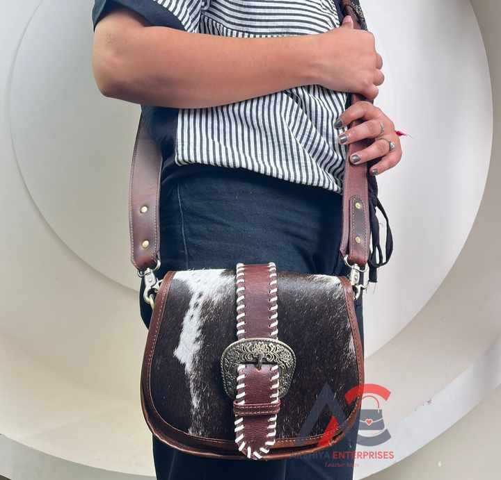 Product name:Cowhide Leather Crossbody Saddle Bag with Buckle