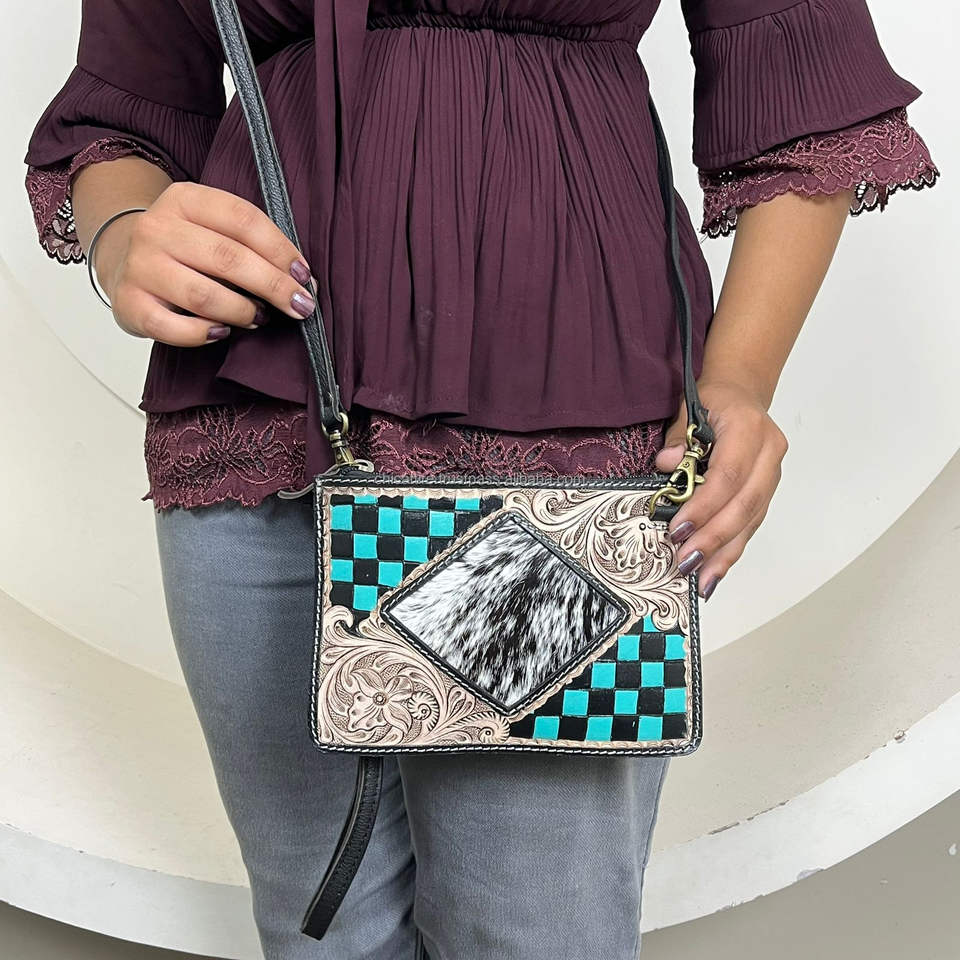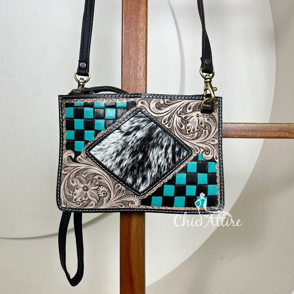 Hand Tooled Cowhide Leather Fashionable Crossbody Bag