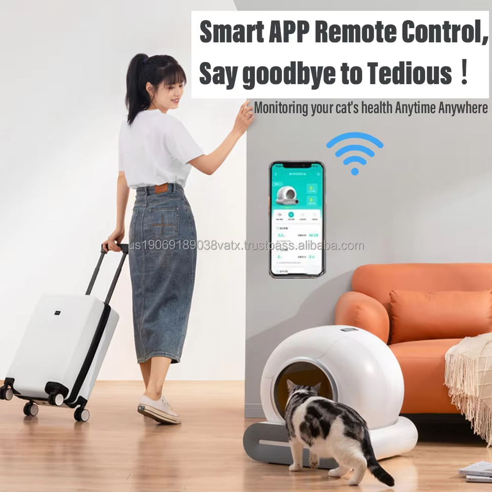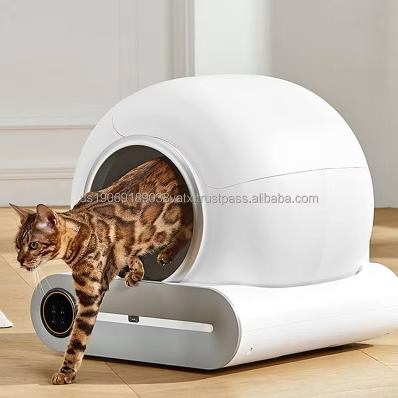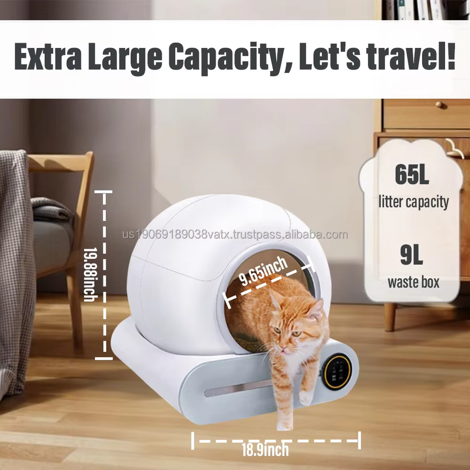 2025 New Design Smart Cat Litter Box Pet Care Robot with Automatic Self-Cleaning Feature Round 65L Capacity Plastic