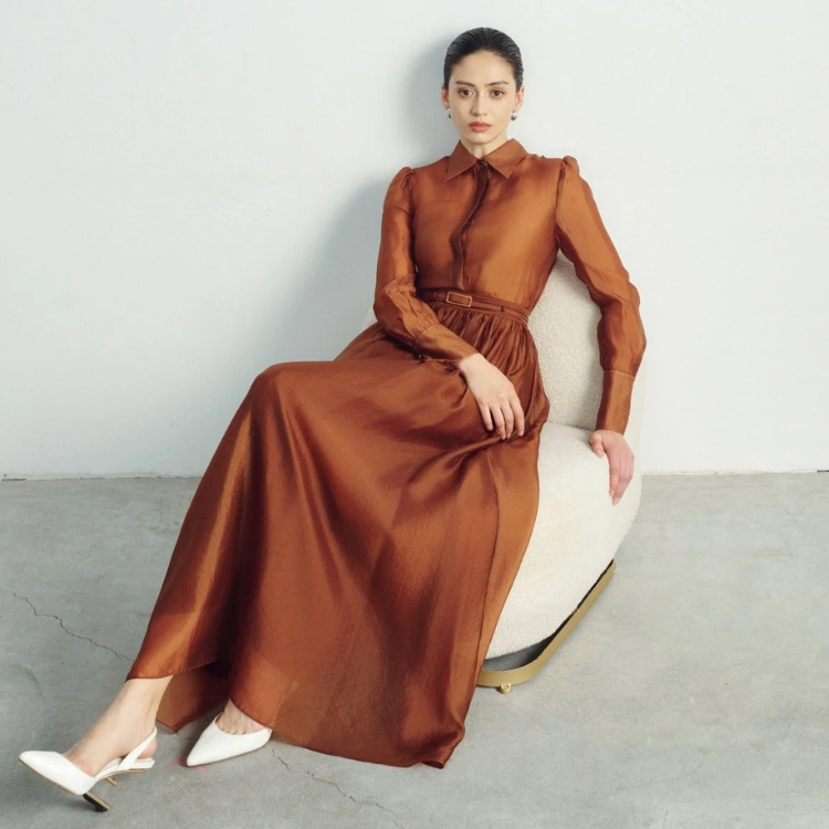 2025 New Design Woman Shirt ESPERANZA RUFFLED TOPS Long-Sleeved Shirt Cupro Fabric Women's Office Clothing Custom Labels