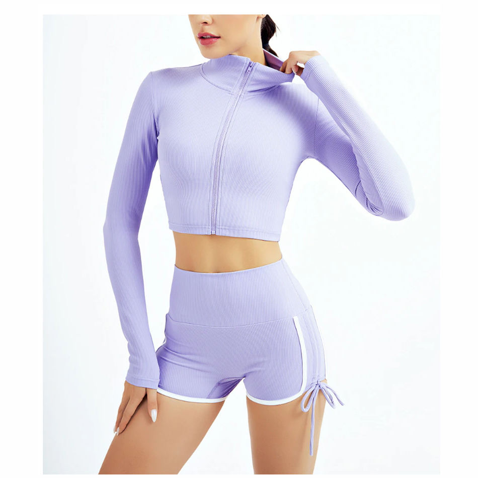 Ribbed, Asymmetric, Backless, Simple, Thumbholes, Ruched Butt, Contrast Stitch, Flared Leg, hollow out, Contrast Binding, Shrug cropped topsFashion Element