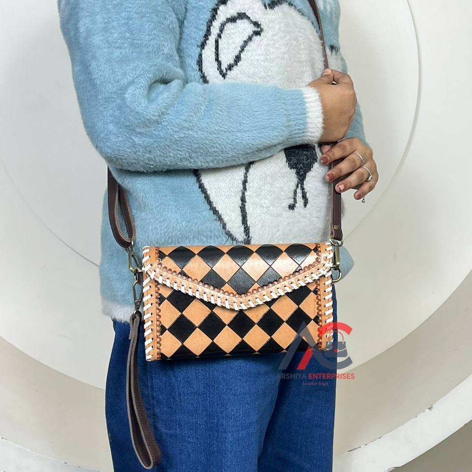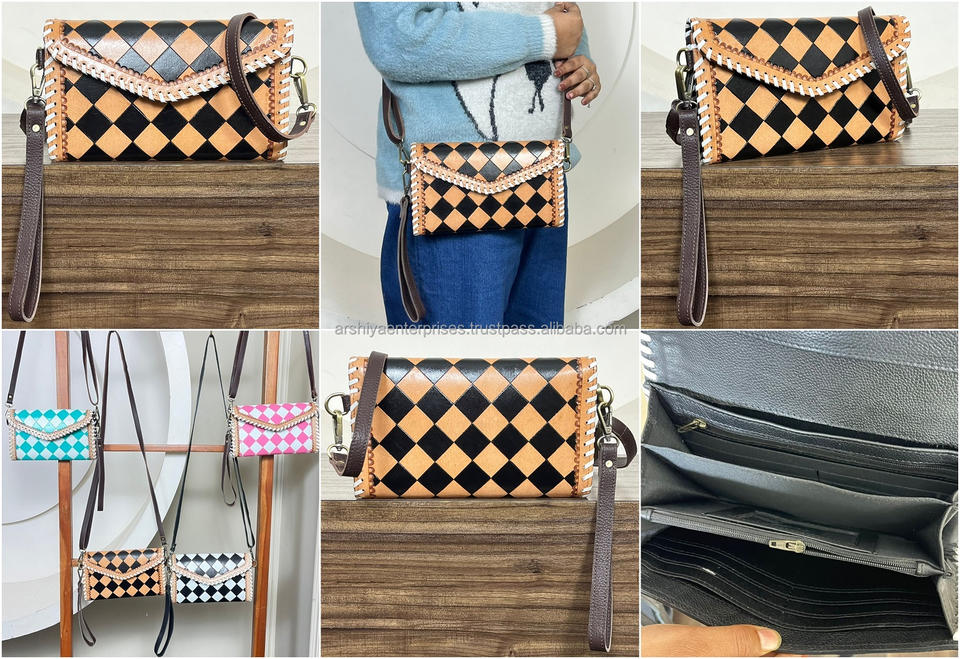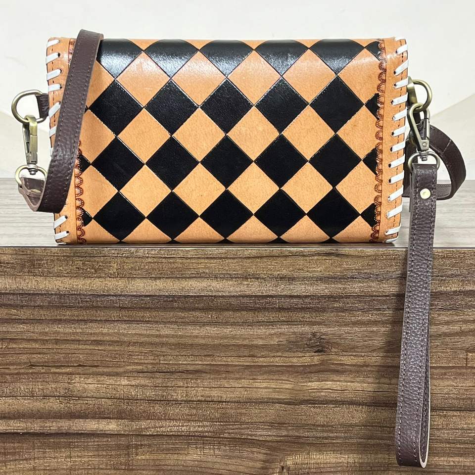 Product Name:Hand Tooled Checkered Leather Crossbody Mini Bag
