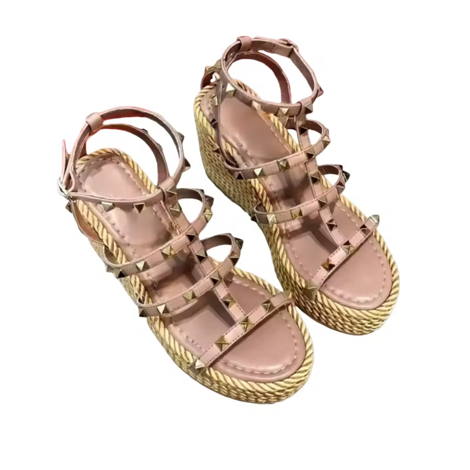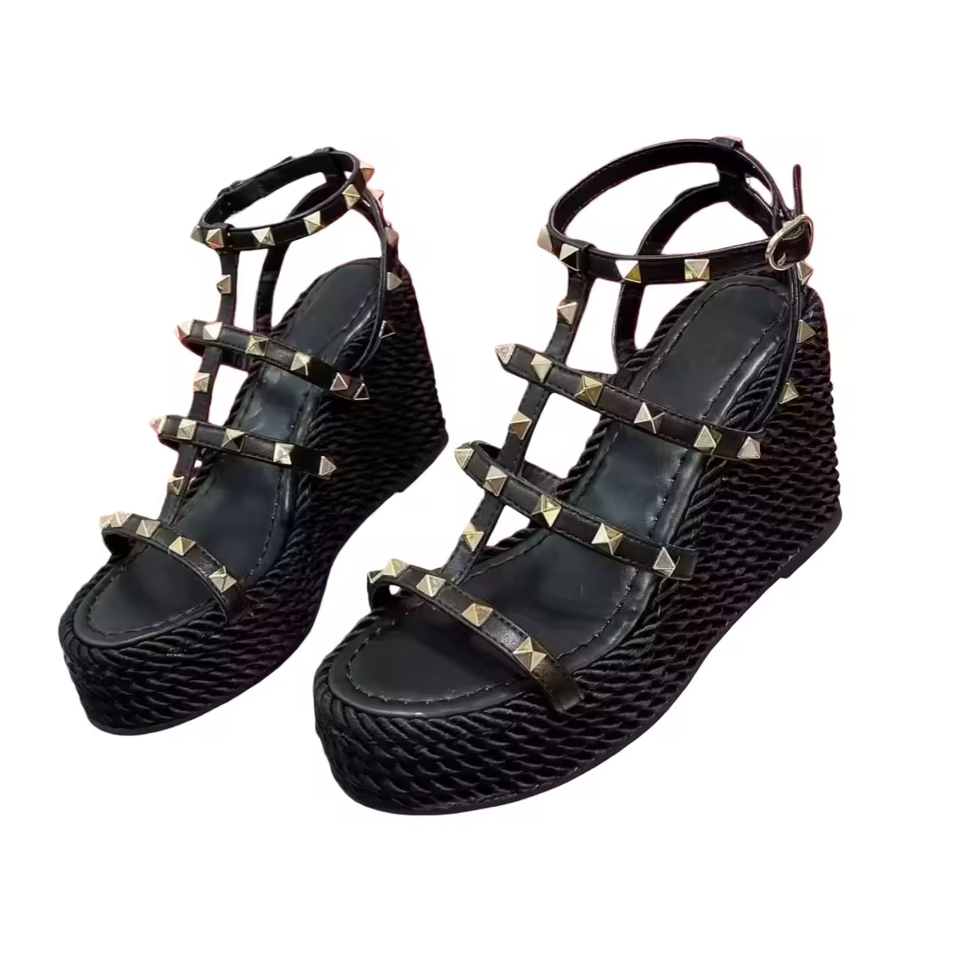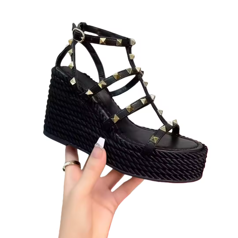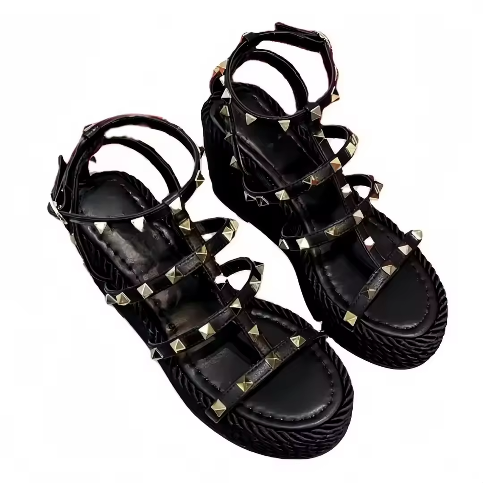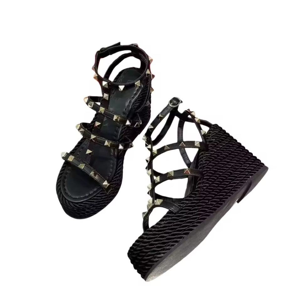 2025 New Designer Women Shoes Luxury Platform Chunky Genuine Leather Shoes Women's Sandals Anti-slip Rivet Lady Flat Sandals