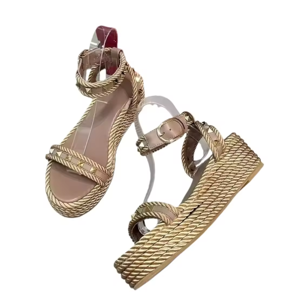 2025 New Designer rivet Sandals Luxury Shoes Fashion Outdoor Genuine Leather Shoes Anti-slip Flat Sandals Women's Casual Shoes