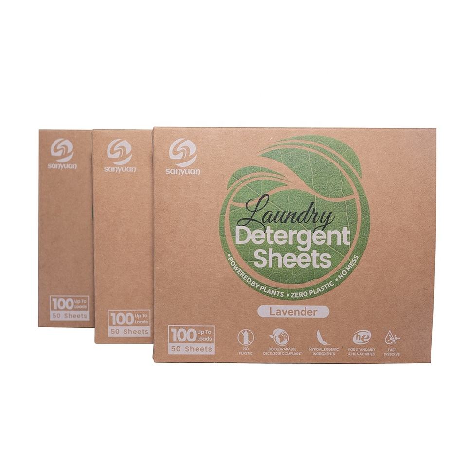 2025 New Eco-Friendly Laundry Detergent Paper Biodegradable Pure Natural Laundry Washing Strip Lavender Laundry Detergent Sheets
