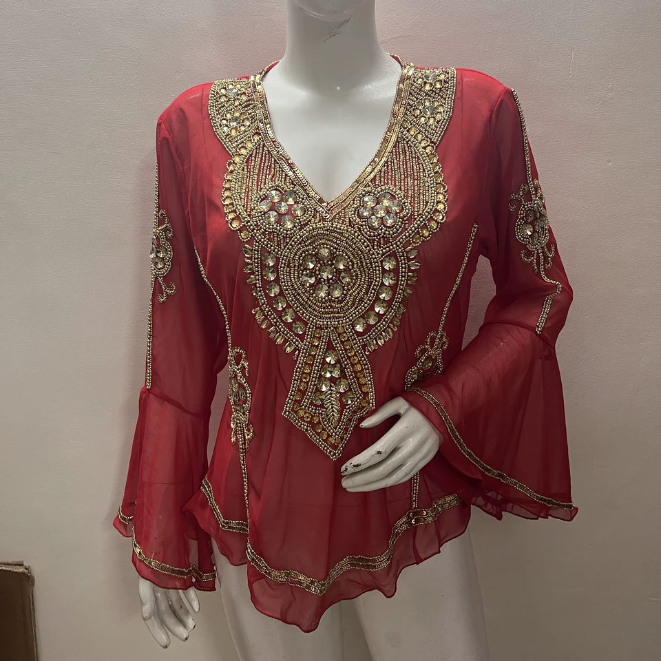 2025 New Exclusive Indian Hand Embroidered Women's Long Sleeve Sequin Blouses Sexy Summer Tops Casual Party Beach Wear Georgette